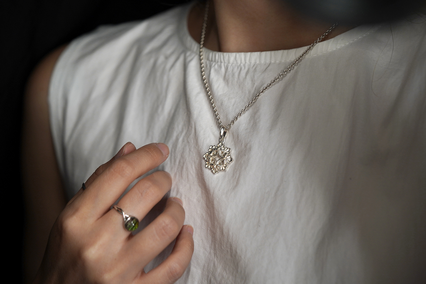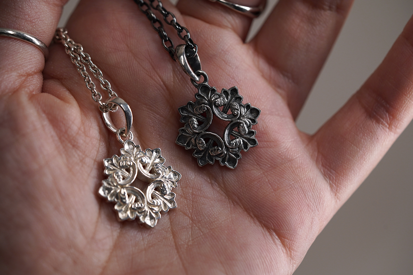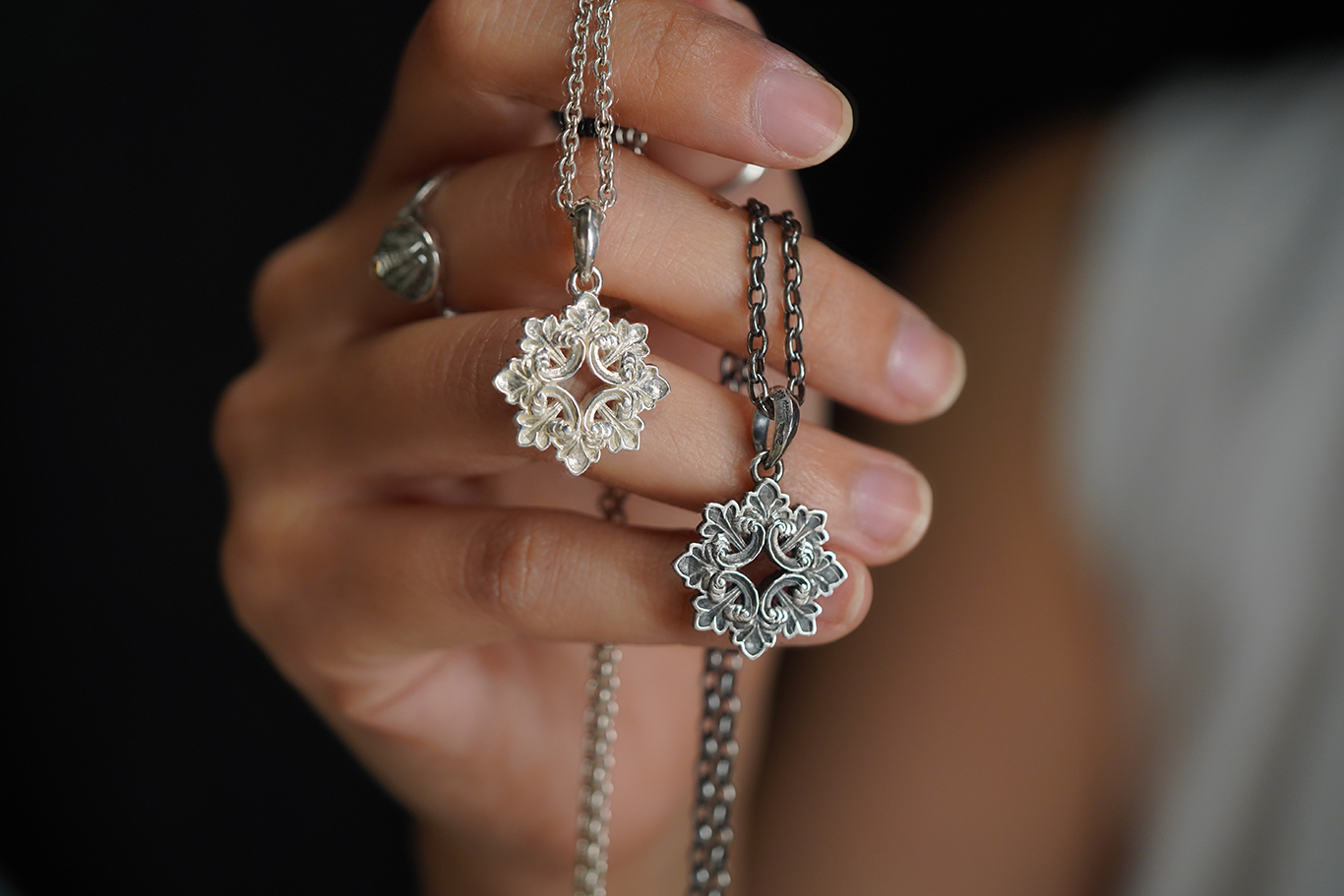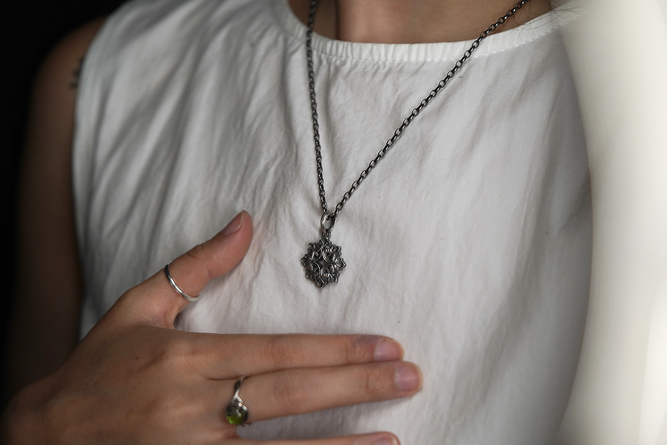 ** Sterling silver tarnishes when exposed to salty air, chlorine, sulfur, humidity, perspiration, cosmetics, household bleach and other strong chemicals. To prevent oxidation and preserve the polish of your sterling silver jewelry, we recommend keeping silver jewelries in the zip bag provided. Oxidized silver jewelry can be cleaned by silver solution and silver cloth.