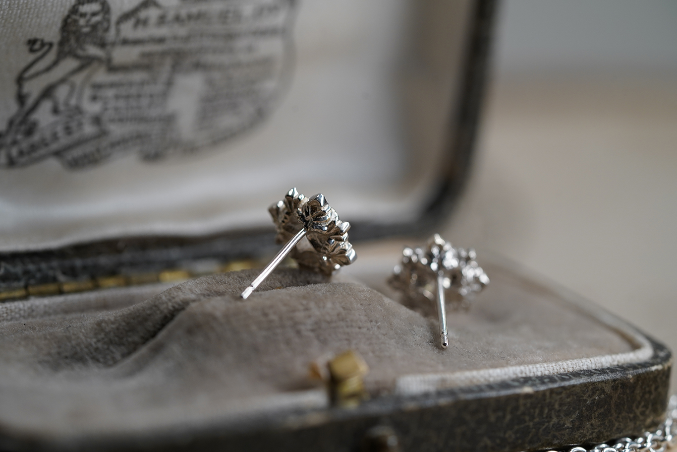 ** Sterling silver tarnishes when exposed to salty air, chlorine, sulfur, humidity, perspiration, cosmetics, household bleach and other strong chemicals. To prevent oxidation and preserve the polish of your sterling silver jewelry, we recommend keeping silver jewelries in the zip bag provided. Oxidized silver jewelry can be cleaned by silver solution and silver clothes.