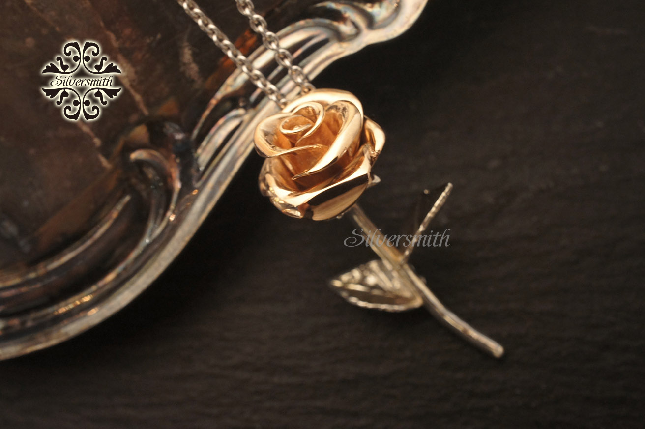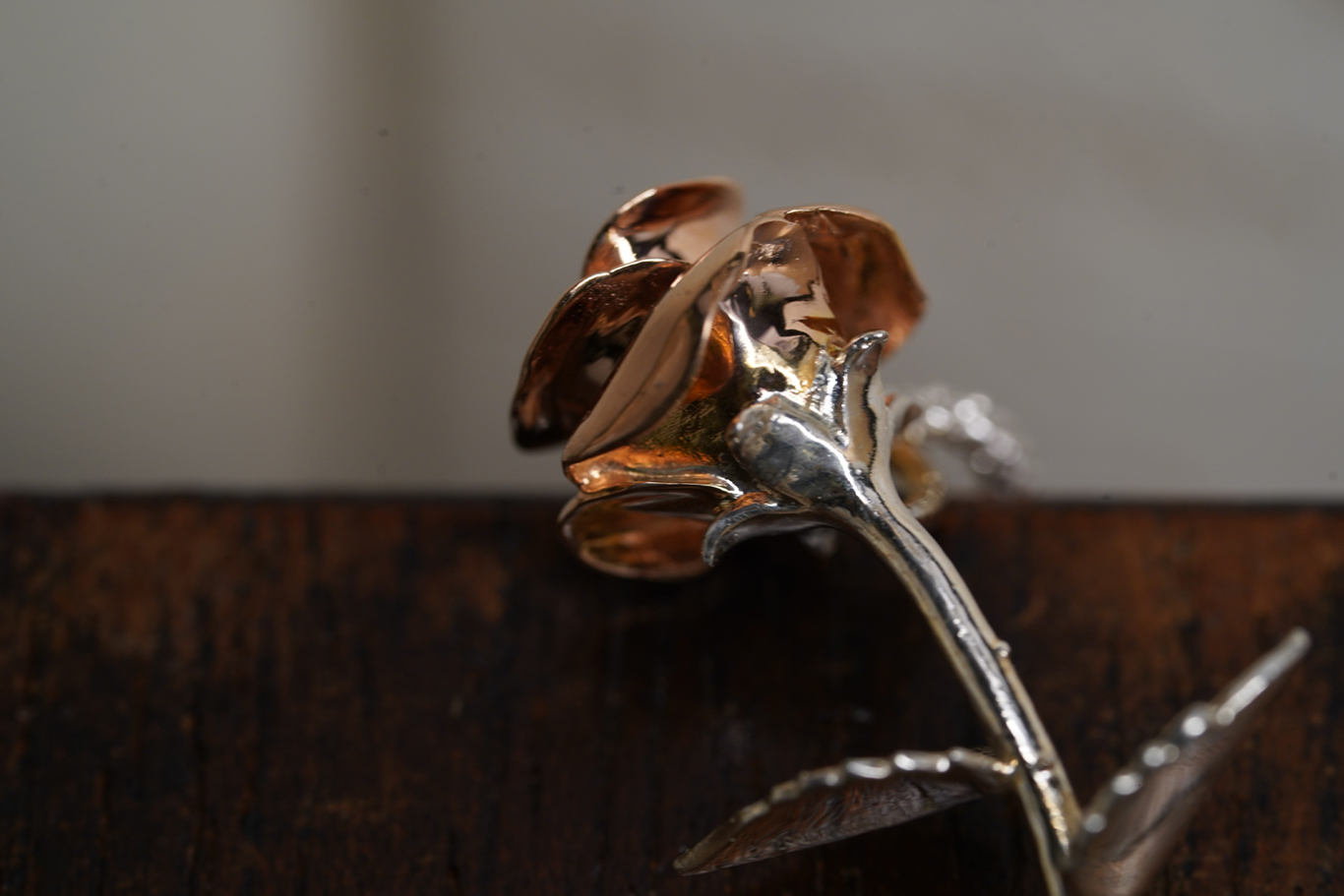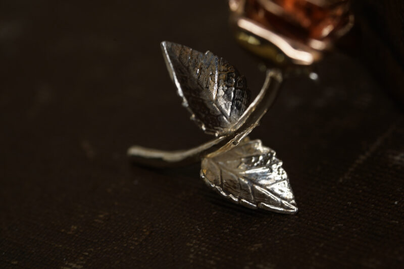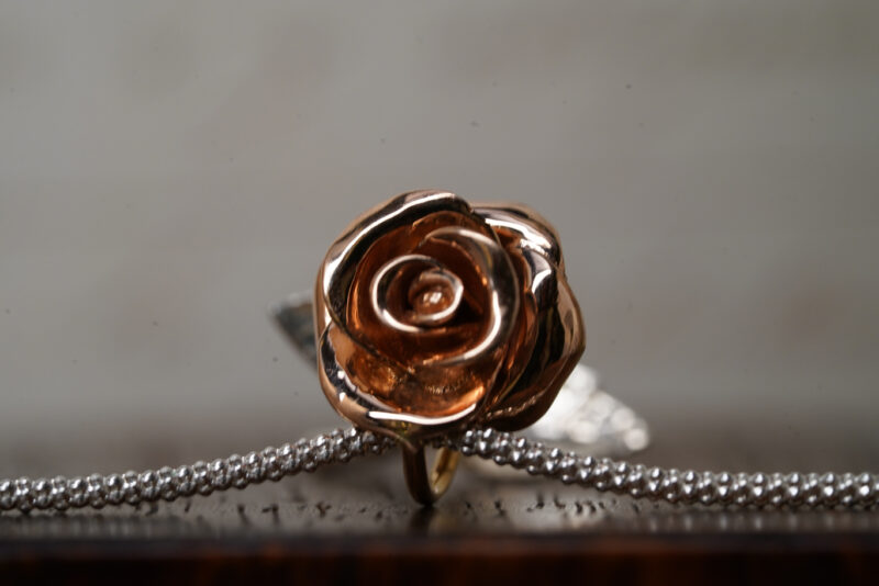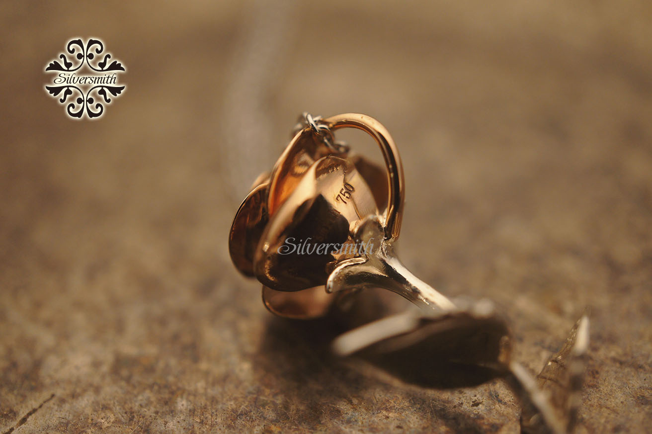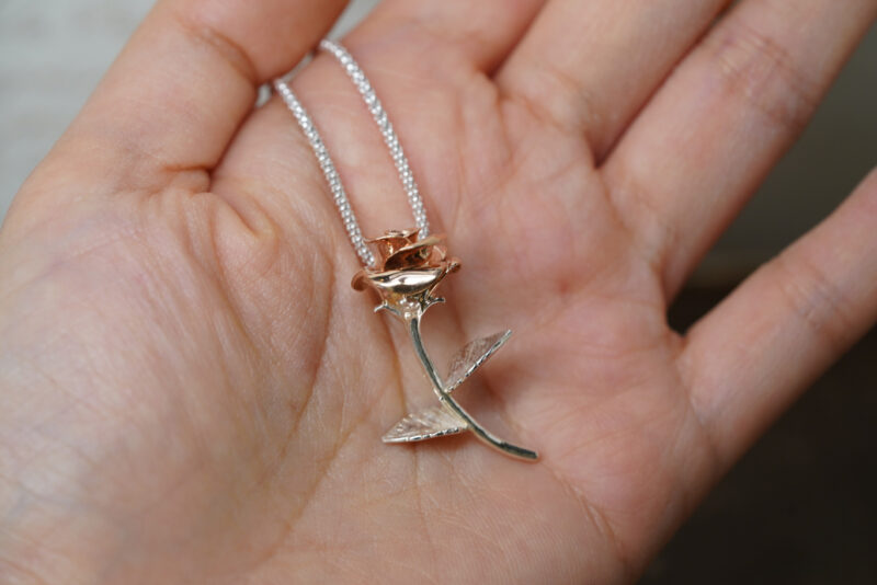 Material:18K Gold (rose bud), 925 silver (branch and leafs)