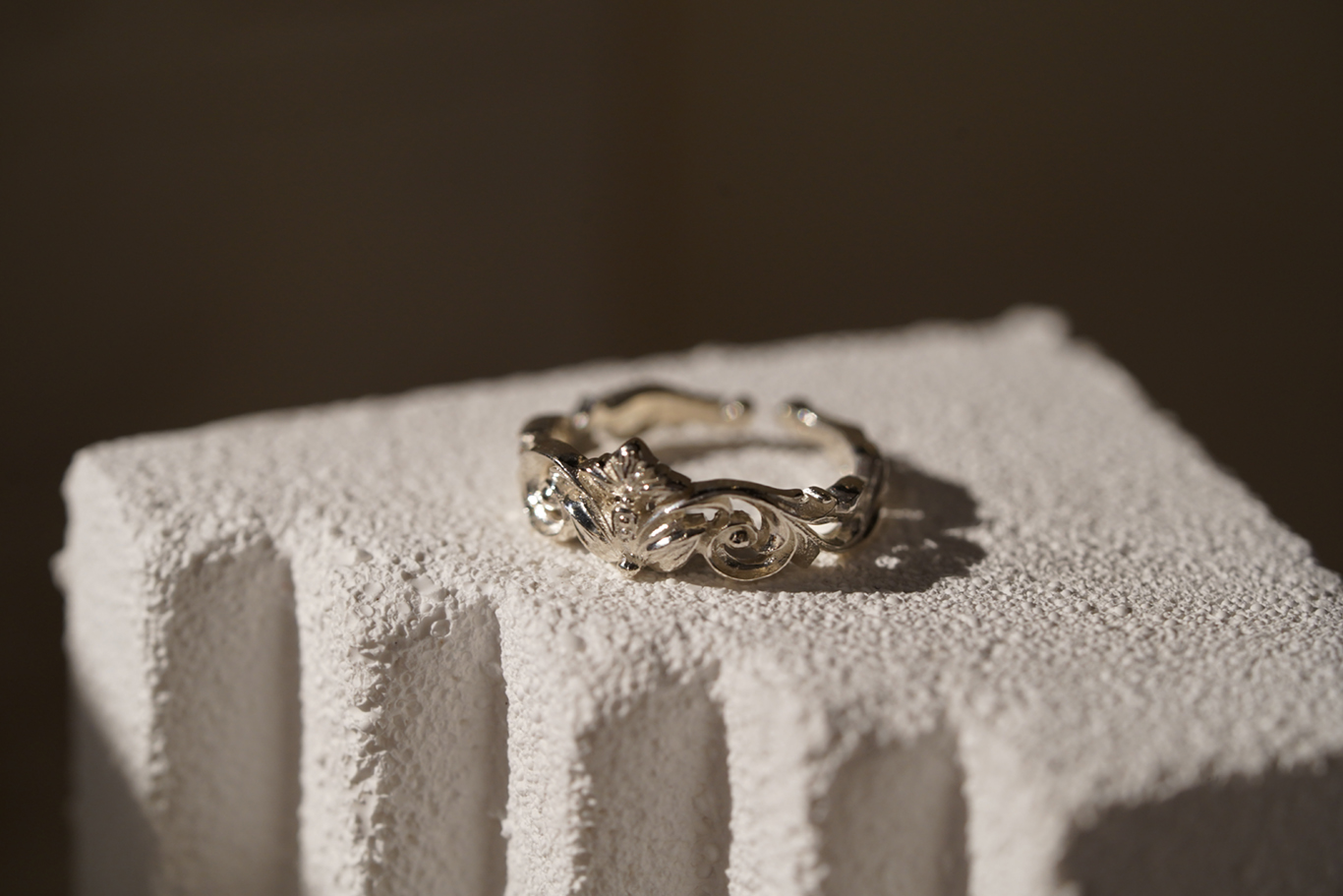 Open ring design. It is slightly adjustable.